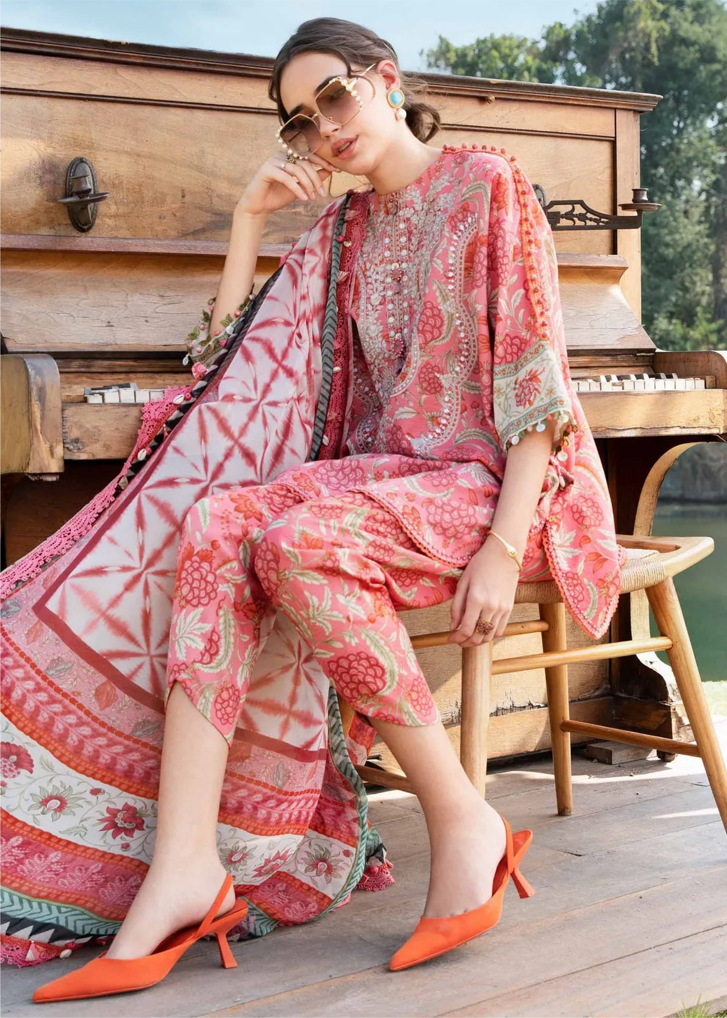 - Shirt/Kameez stitched similar to image – Please Note: Crop tops, dropped shoulders, low necks, backless designs, and three-quarter trousers are adjusted modestly. (Lining is provided with all transparent shirts.)