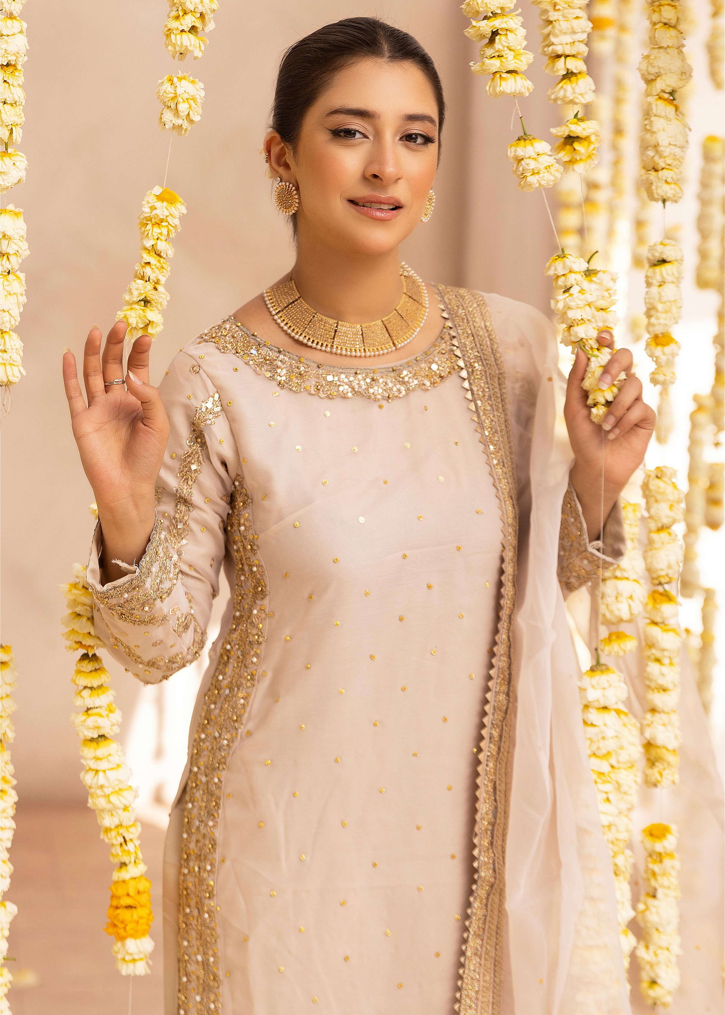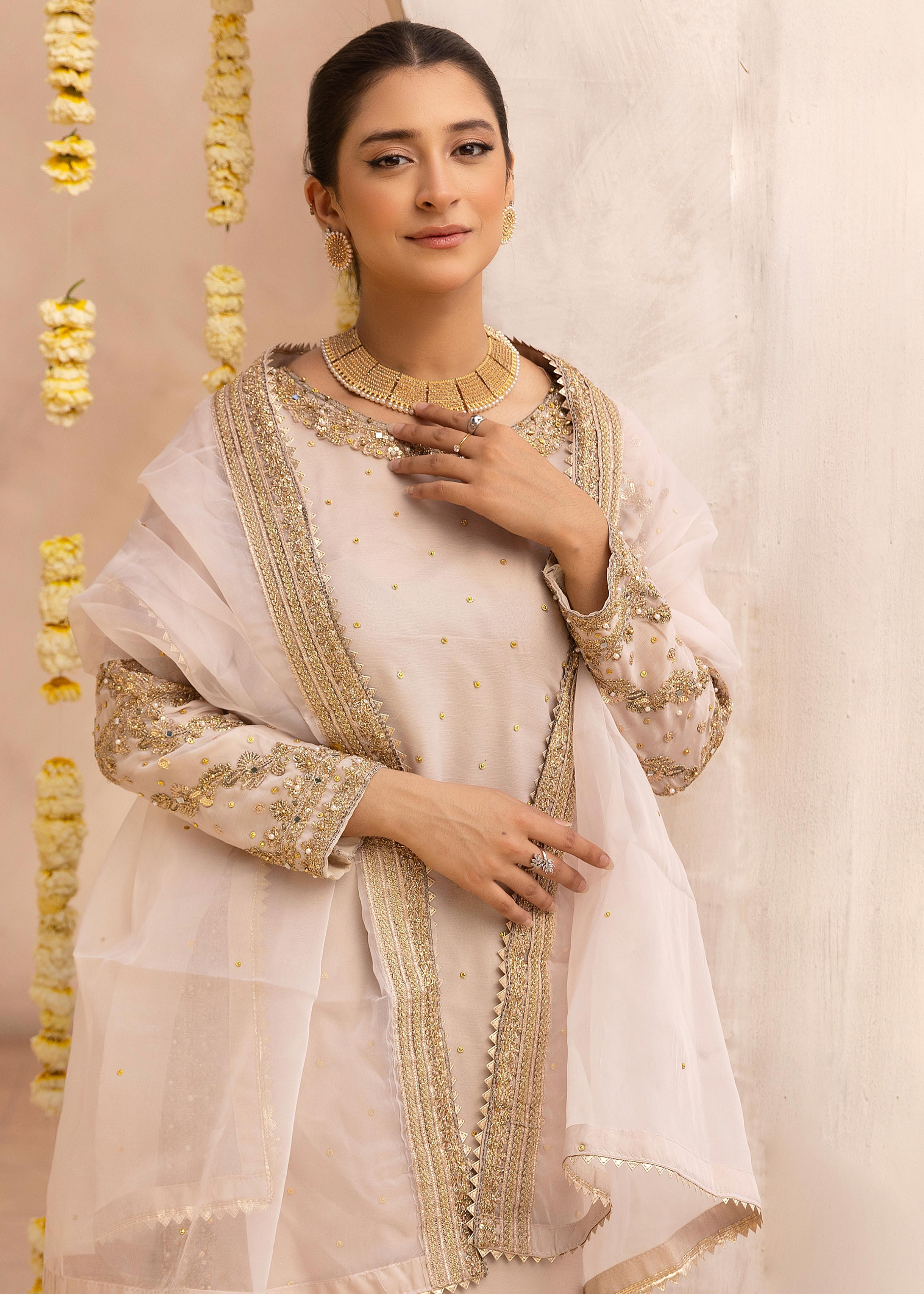 Whether it's for a wedding, Eid, or a family celebration, this graceful pair captures love, tradition, and modern glam — all in one. Add a touch of sparkle and sophistication to your special moments with this picture-perfect ensemble.